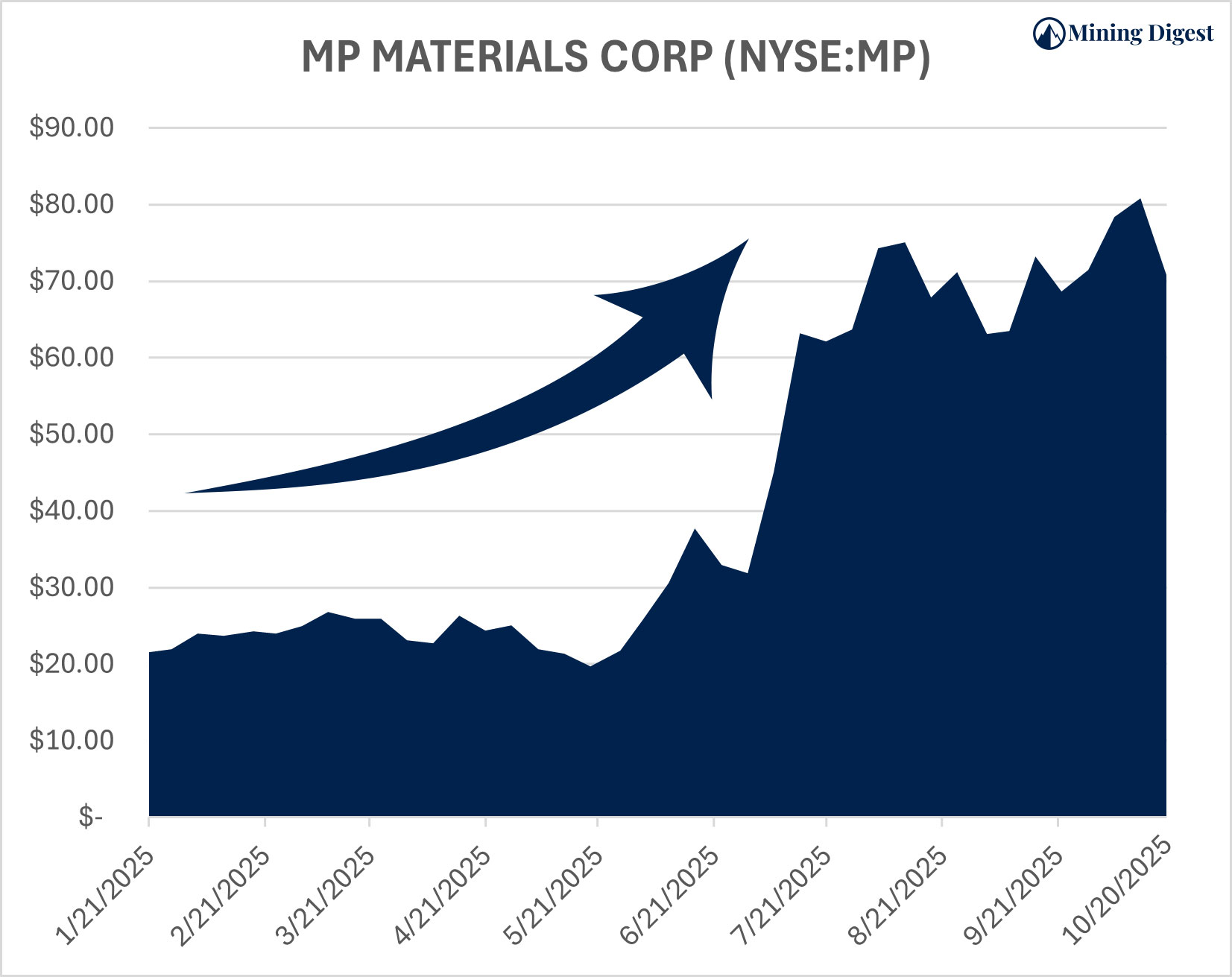 After acquiring the Mountain Pass rare earth mine in California, MP’s stock jumped from $11.17 in August 2024 to $98.65 by October 2025 – a staggering 783% gain in 14 months.21